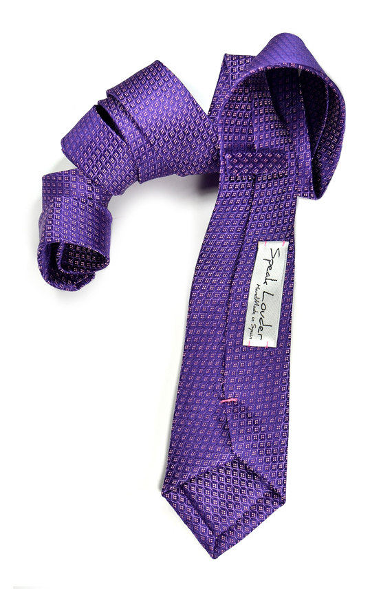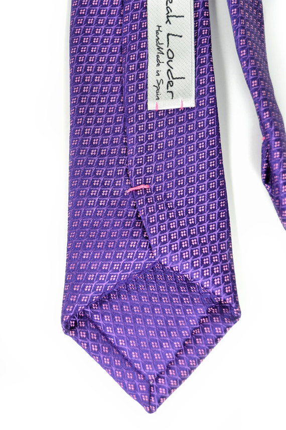 This purple silk necktie shines in every suits, the color dots gives the touch of fun at this elegant silk tie-