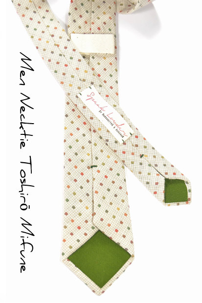 Men Necktie Toshiro Mifune - Woven yarn dyed cream with orange, green, yellow dots tie