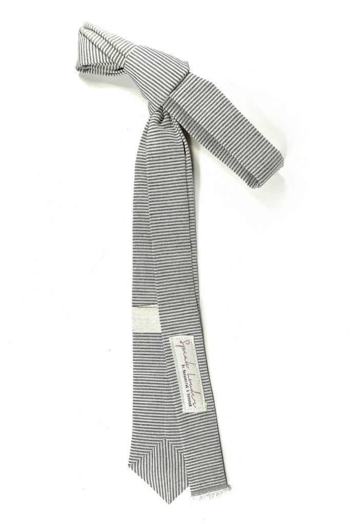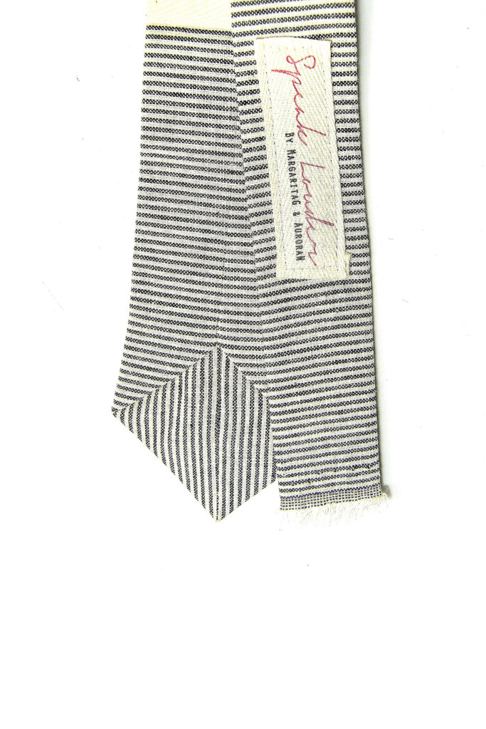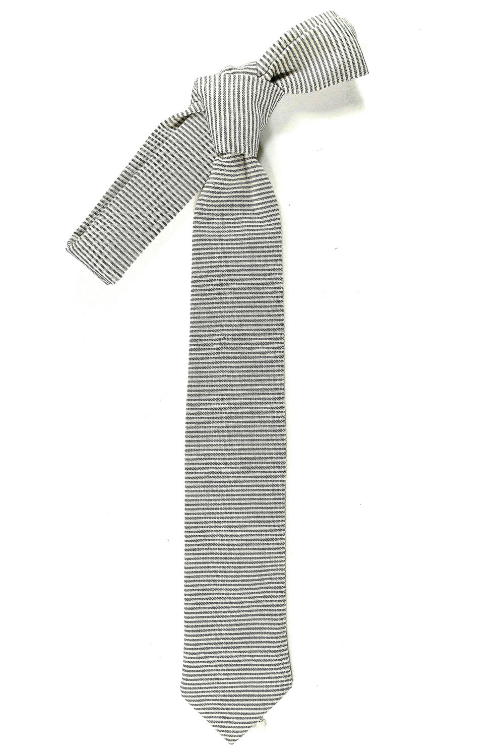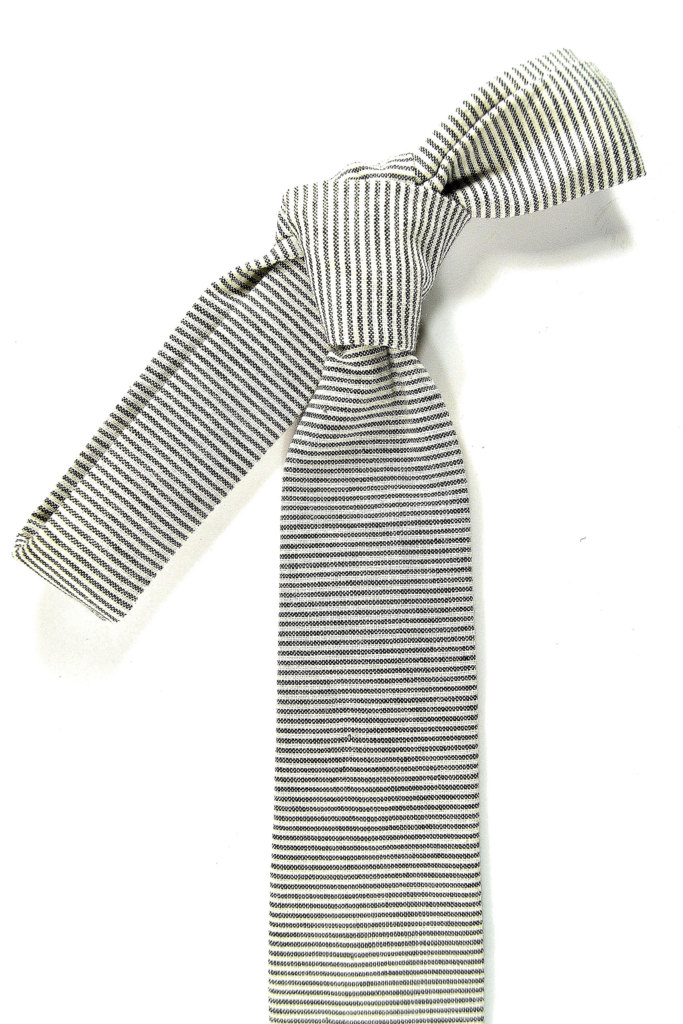 Wedding Mens Skinny Necktie- striped black ivory Chambray- Laid-Back necktie