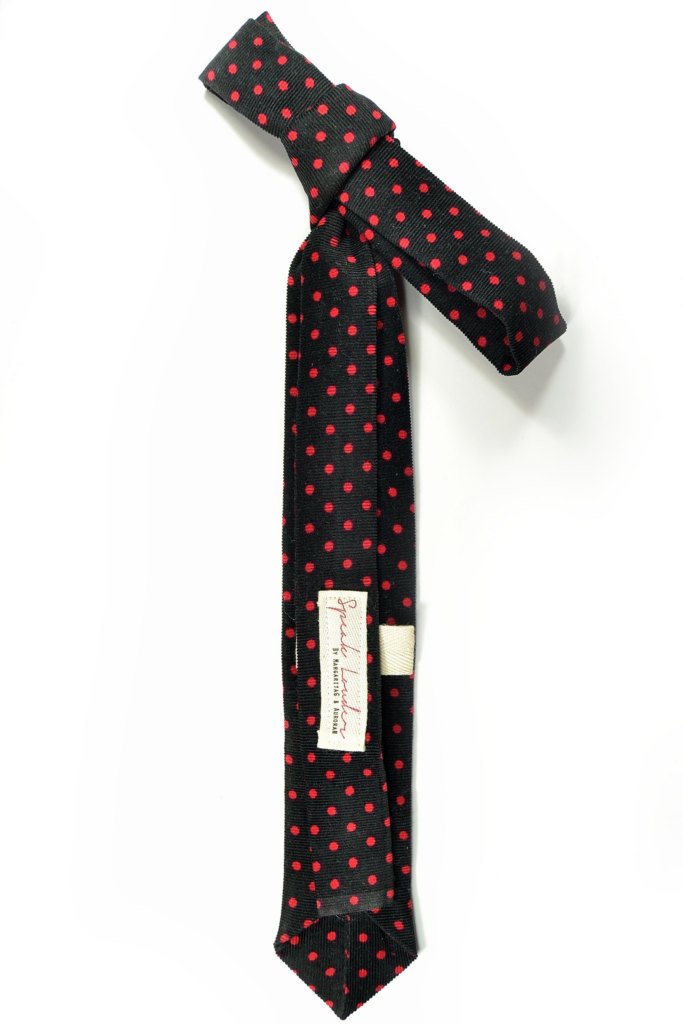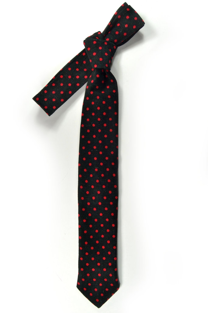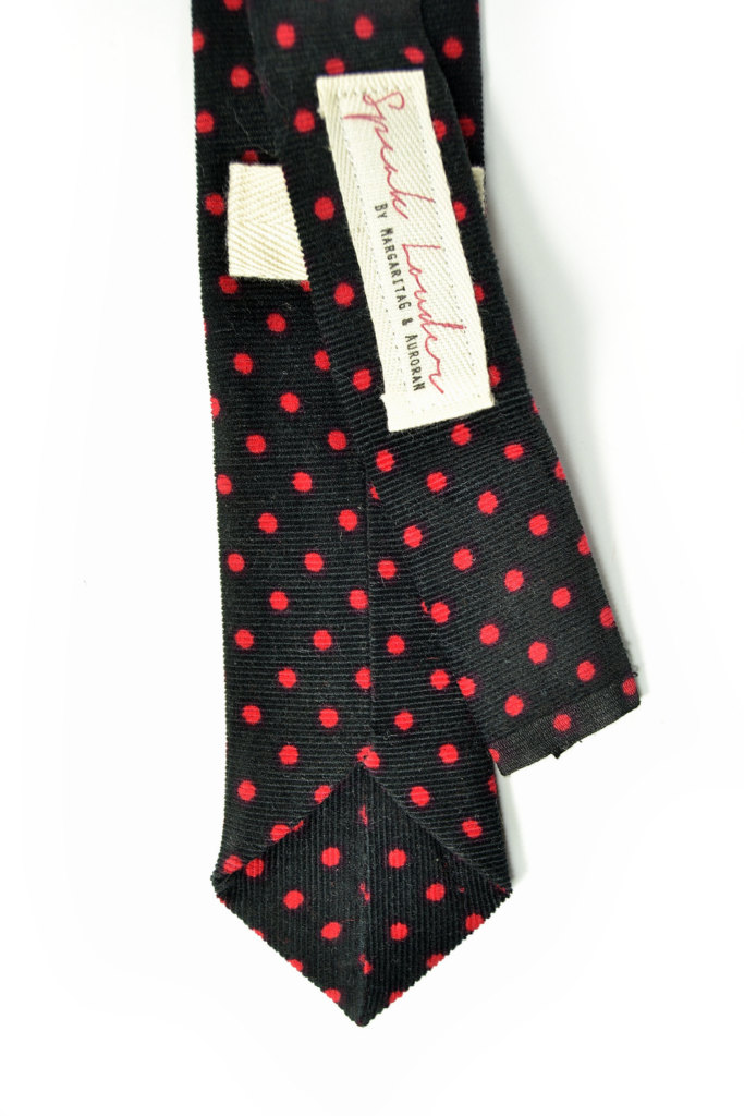 Mens Tie Skinny Necktie corduroy black and red polka dots