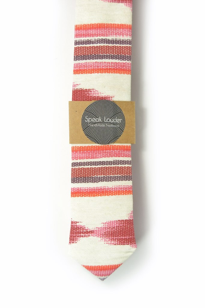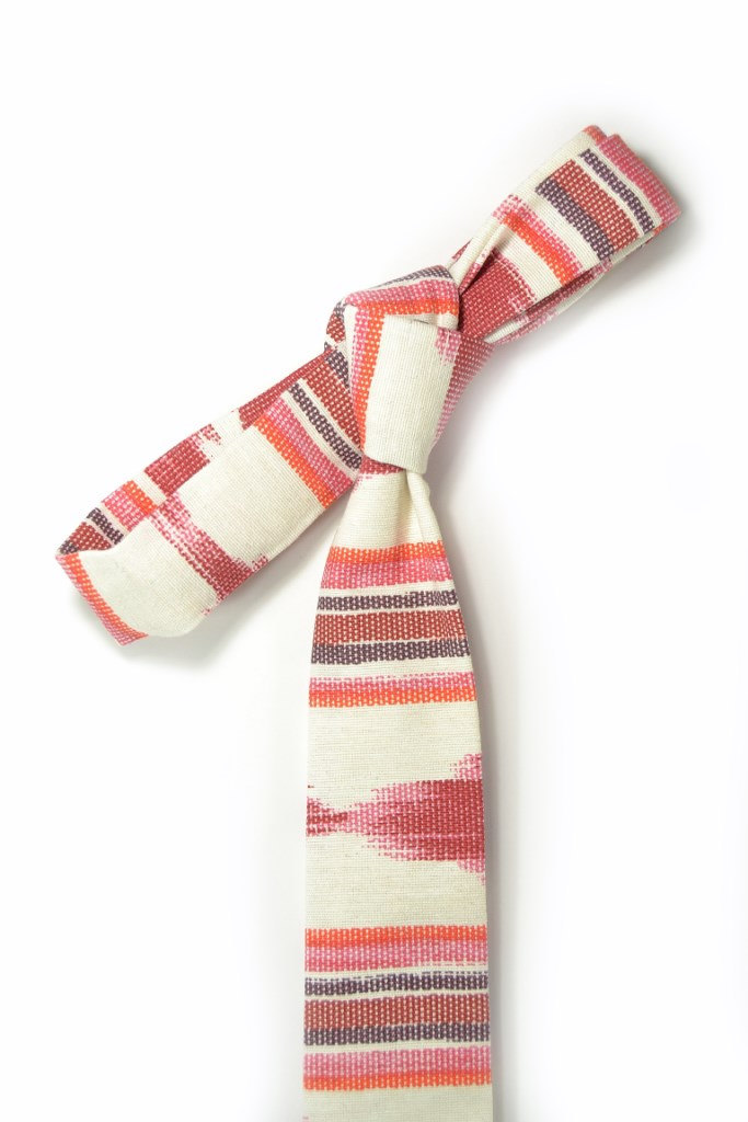 Red oarange and ivory ikat tie - Wedding Mens Tie Skinny Necktie - Laid-Back necktie