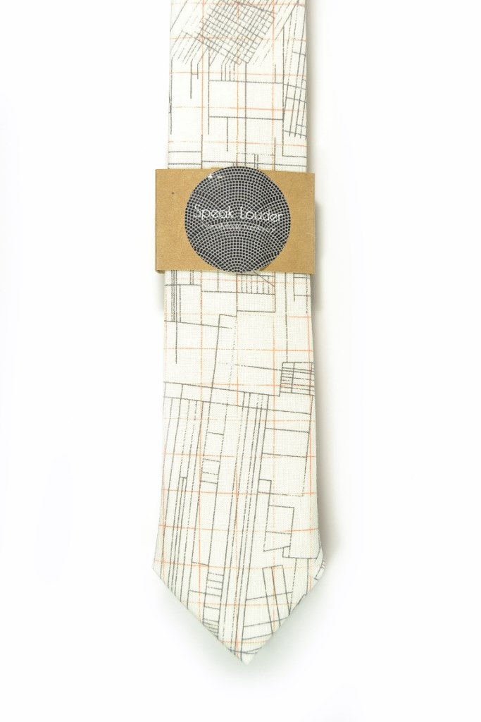 Orange white architecture necktie - Wedding Mens Tie Skinny Necktie - Laid-Back necktie