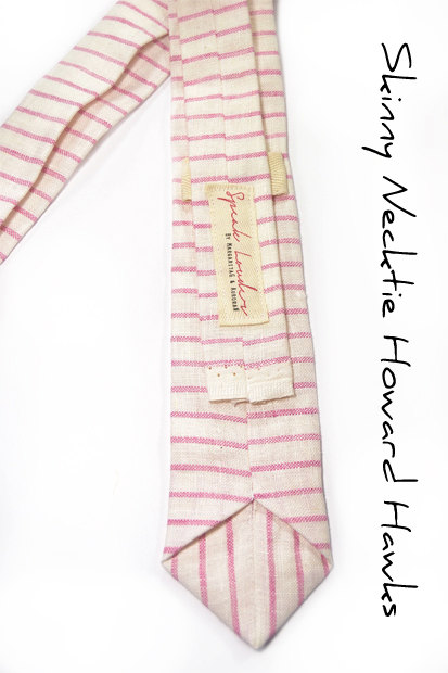 Mens Tie Skinny Necktie - Laid-Back necktie- pink white stripe linen