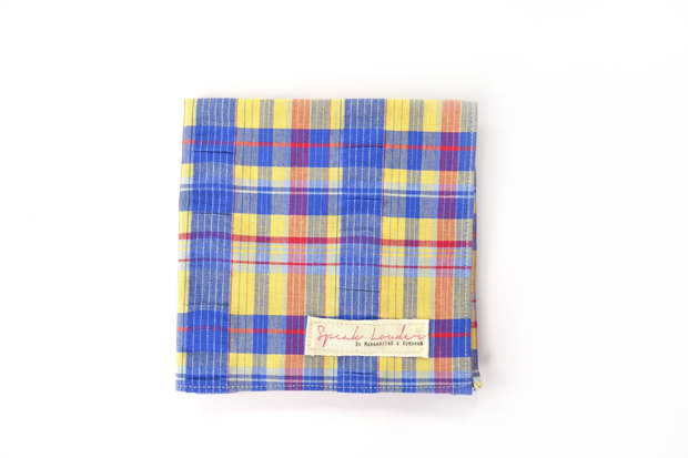 Mens Pocket Square Blue yellow red check